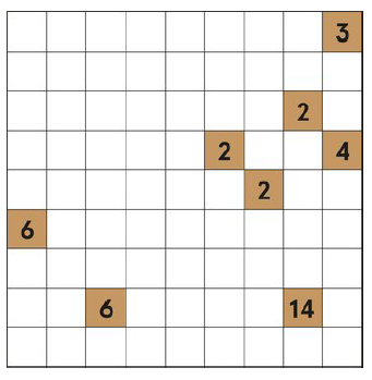 Mehrere Gruppen in einer Zeile/Spalte sind durch eine oder mehrere schwarze Zellen (ohne Zahl) getrennt.