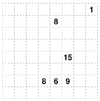In jeder Zeile und jeder Spalte dürfen die Zahlen 1..6 maximal einmal vorkommen.